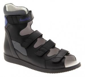 Ортопедические сандалии (тутор) показаны для детей с деформацией стоп при ДЦП, гемипарезе, после операций на стопе и голеностопном суставе. Конструкция обуви оснащена высоким жестким задником и продленными берцами, полностью фиксирует задний отдел стопы ребенка, что способствует правильному положению всей нижней конечности и обеспечивает устойчивость походки. Подошва AntiValgus с изменением градуса пяточной зоны исключает заваливание стопы вовнутрь. Верх модели выполнен и натуральной кожи и вставок из текстиля. Внутренняя подкладка модели изготовлены из натуральной кожи. Для смягчения давления и профилактики натирания голени верх задника оснащен мягкой вставкой. Четыре ремешка с липучками велкро обеспечивают полную раскрываемость обуви для облегчения надевания.