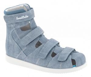 Ортопедические сандалии (тутор) показаны для детей с деформацией стоп при ДЦП, гемипарезе, после операций на стопе и голеностопном суставе. Конструкция обуви оснащена высоким жестким задником и продленными берцами, полностью фиксирует задний отдел стопы ребенка, что способствует правильному положению всей нижней конечности и обеспечивает устойчивость походки. Подошва AntiValgus с изменением градуса пяточной зоны исключает заваливание стопы вовнутрь. Верх модели выполнен и натуральной кожи и вставок из текстиля. Внутренняя подкладка модели изготовлены из натуральной кожи. Для смягчения давления и профилактики натирания голени верх задника оснащен мягкой вставкой. Четыре ремешка с липучками велкро обеспечивают полную раскрываемость обуви для облегчения надевания.