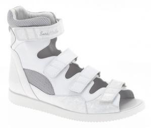 Ортопедические сандалии (тутор) показаны для детей с деформацией стоп при ДЦП, гемипарезе, после операций на стопе и голеностопном суставе. Конструкция обуви оснащена высоким жестким задником и продленными берцами, полностью фиксирует задний отдел стопы ребенка, что способствует правильному положению всей нижней конечности и обеспечивает устойчивость походки. Подошва AntiValgus с изменением градуса пяточной зоны исключает заваливание стопы вовнутрь. Верх модели выполнен и натуральной кожи и вставок из текстиля. Внутренняя подкладка модели изготовлены из натуральной кожи. Для смягчения давления и профилактики натирания голени верх задника оснащен мягкой вставкой. Четыре ремешка с липучками велкро обеспечивают полную раскрываемость обуви для облегчения надевания.